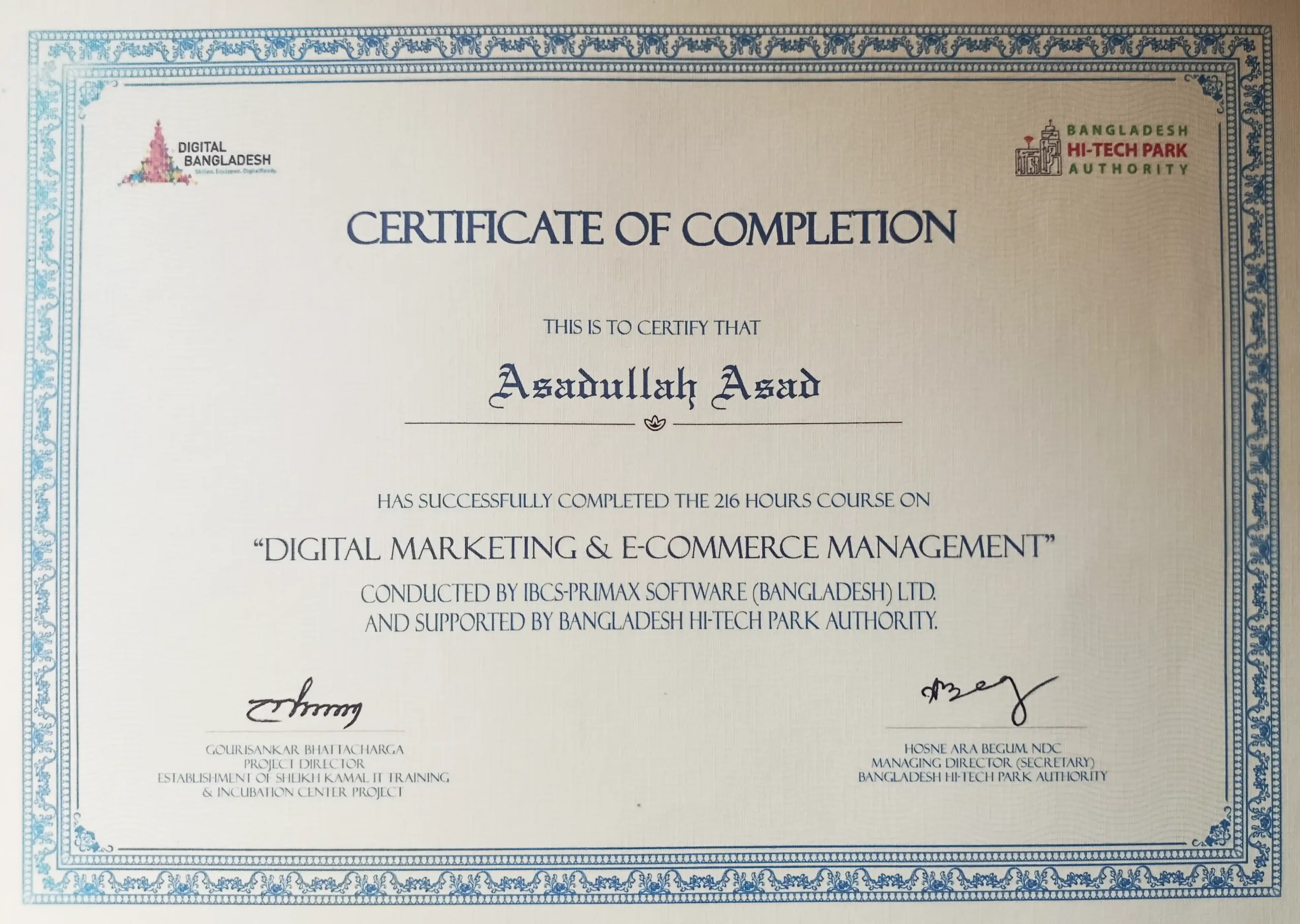 চেম্বারের ব্র্যান্ড ও প্রচারণা নিয়ে বহু চেষ্টা করেও বিশেষ প্রভাব দেখা যাচ্ছিল না। তখন ডিজিটাল মার্কেটিং করার সিদ্ধান্ত নিলাম। অনলাইনে পরিচয়ের পর আসাদুল্লাহ আমার সাথে কাজ শুরু করলো। এক বছর ধরে তার উদ্ভাবনী আইডিয়া এবং পরিশ্রম আমার চেম্বারের প্রচারণাকে নতুন মাত্রা দিয়েছে। বিশেষ করে তিনি আমার জন্য ওয়েবসাইট ডিজাইন ও সেটআপ করেছেন, যা চেম্বারের জন্য অত্যন্ত কার্যকরী প্রমাণিত হয়েছে। আলহামদুলিল্লাহ, আমি তার সার্ভিসে পুরোপুরি সন্তুষ্ট।